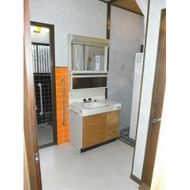 【リフォーム内容詳細】 間取り変更、洗髪洗面化粧台取替、天井・壁クロス貼替、床CF貼、洗濯用水栓取替
