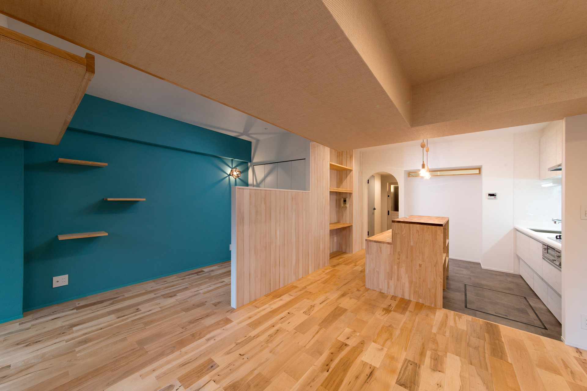 リビング横のスペースには、キャットウォークを設けて猫ちゃんの運動不足解消。リノベだからこそできる工夫