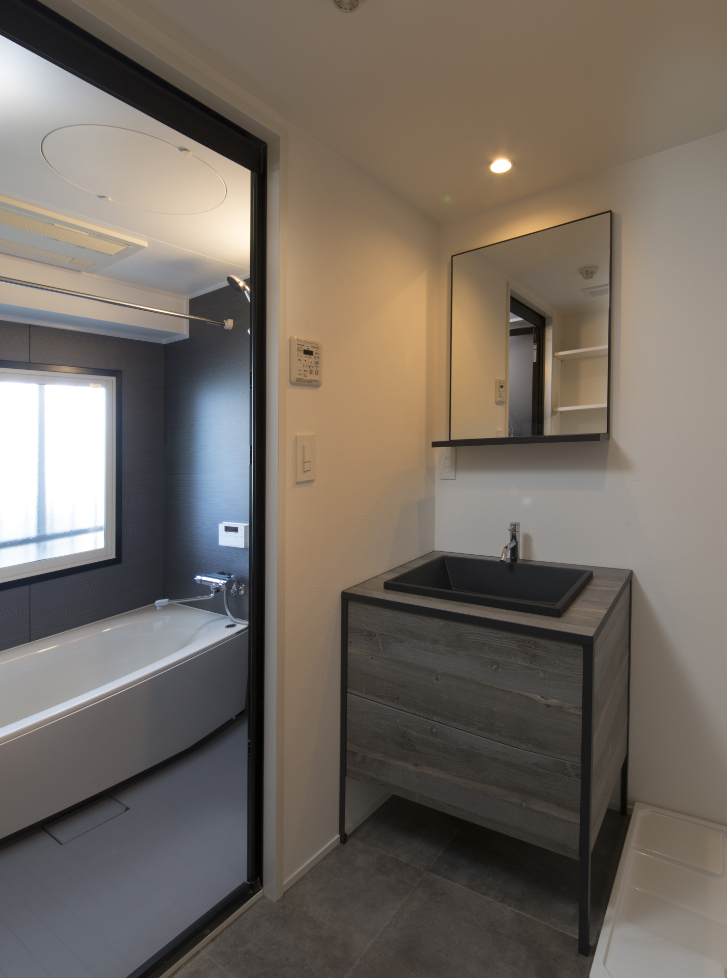 素材感を活かした洗面台と落ち着きある浴室。日常のリセット時間を上質に演出