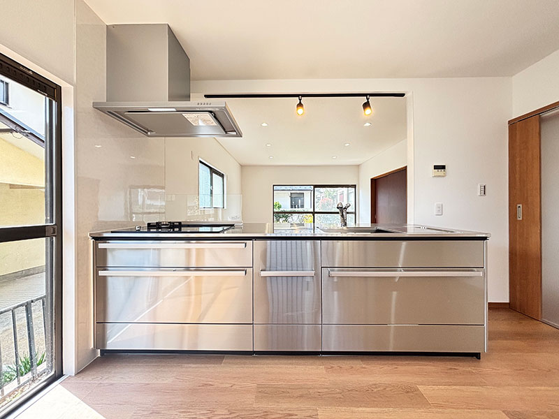 ・元々の内装の木目の色を活かし、温もりのある古民家風の雰囲気に仕上げました。 ・閑静な住宅街に位置しているため、ガーデニングをお楽しみいただけるよう、駐車場は拡張せず、広い庭をそのまま残しております。 ・外壁は植栽が映えるよう、明るい色味を採用しました。 ・キッチンはオールステンレス仕様で、無骨なデザインが厨房を彷彿とさせますか、シルバー系の食器棚やステンレス製の家具を組み合わせることで、より一層映えるキッチンとなっております。 ・内装は、さまざまな色合いの家具とも調和しやすい仕上がりに。 ・水回りを新しく整えたことで、新生活をより快適にお過ごしいただけるリフォームとなっております。