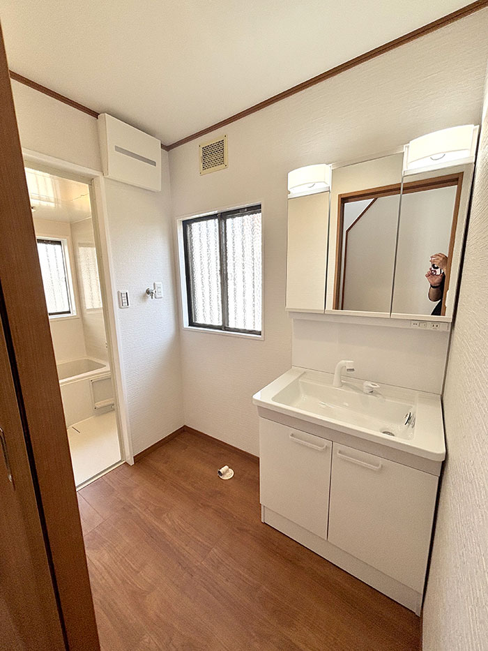 建具:DAIKEN ハピア(色:ティーブラウン、金具色:シルバー) 建具:ダイノックシート施工(品番:FW-1280) クロス:シンコール SLプラス(品番:SLP-230) 階段・LDKフロアタイル:サンゲツ FLOORTILE(品番:WD-1028-W) 廊下フローリング:EIDAI タフトップA(品番:TPAD-BCHT-XF) 照明部材:ODELIC製一式 玄関収納:DAIKEN ハピア 間口1200mm 収納部材:南海プライウッド製 外壁塗料:日本ペイント ファインパーフェクトトップ ND503 屋根塗料:日本ペイント シリコンルーフⅡ(色:チョコレート) 軒天:日本ペイント ケンエースGⅡ N90 雨戸雨どい破風付帯部:日本ペイント ファインウレタンU100 N90 屋根下塗り塗料:日本ペイント 1液ハイポンファインデクロ 外壁下塗り塗料:日本ペイント パーフェクトサーフ 木部下塗り:日本ペイント 1液ファインウレタン木部用下塗り