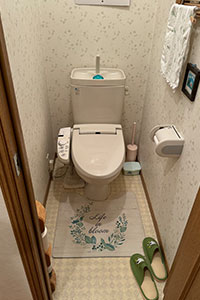 トイレ:LIXIL Jフィット クロス:サンゲツ リフォームアップ(アクセント:77-4064、ベース:77-4063) フロアタイル:サンゲツ フロアタイル イッキミ(品番:IS8121)