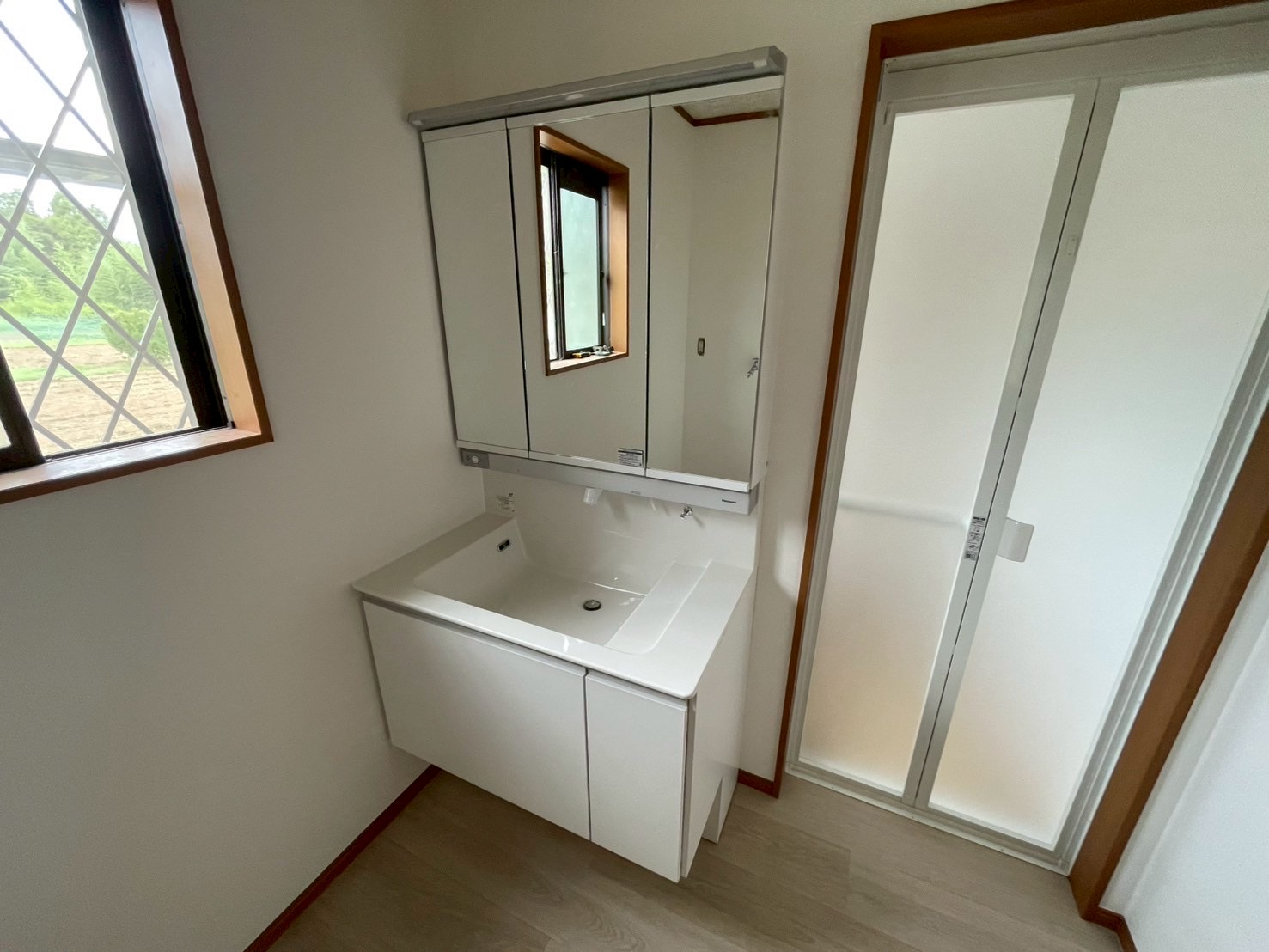 奥様ができるだけ不便なく使えるようにするにはどうしたらいいか、いろいろと悩みながらの工事でしたが、無事にご満足いただける空間に仕上がり良かったです。 トイレ:TOTO ピュアレストQR(便座:TOTO アプリコット F4A) 手洗い器:LIXIL オールインワン手洗い 洗面化粧台:LIXIL ドゥケアカウンター 引戸:DAIKEN 2枚連動引戸