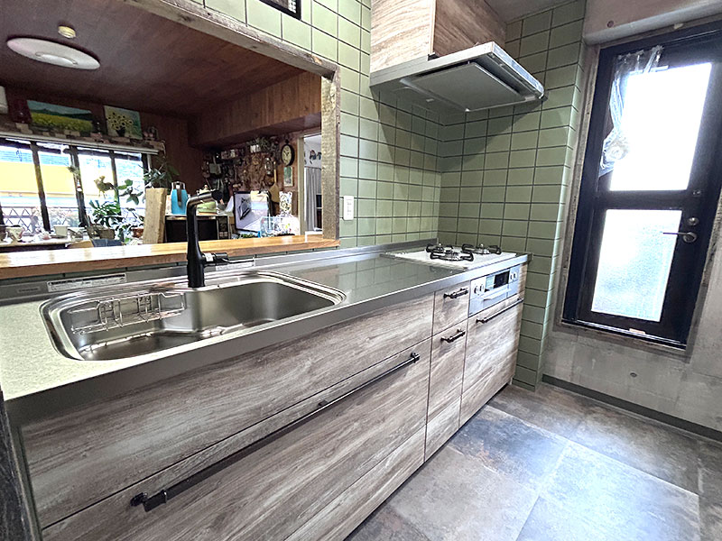 ・カウンターはデザイン性が高く、光によって表情を変えるクリスタルカウンターを採用しました。 ・機能性を高めるため、自動水栓とタッチレス照明を採用しました。 ・清掃性を高めるために、きれい除菌水を採用しました。 ・窓を1つから両サイドに2つ設置することで換気効率を大幅に高めるウィンドキャッチを採用しました。 ・左側の壁を取り、洗濯機置き場と可動棚収納を設置しました。