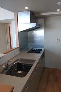 ・キッチンを新しくしたい。 ・腰壁と下がり壁を無くし開放的にしたい。 ・背面の方に収納を設けたい。