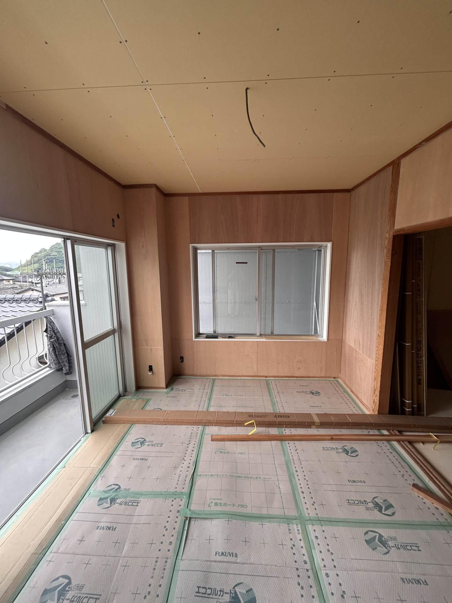 壁は聚楽壁を剥ぎ、下地を入れクロスで仕上げました。 床は下地調整をおこないコンパネをはりラシッサSのフロアで仕上げました。 昭和のティストから令和のお洒落な感じへ移行できました。(笑 笑)ちょっと抽象的過ぎてすみません。💦 収納内はそのまま活かし、襖や出入口の引き違いは洋風に張り替えました。