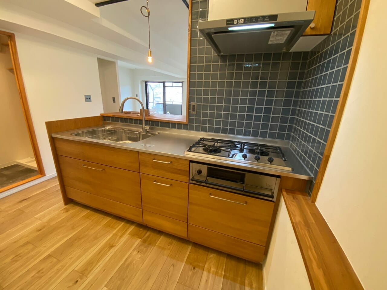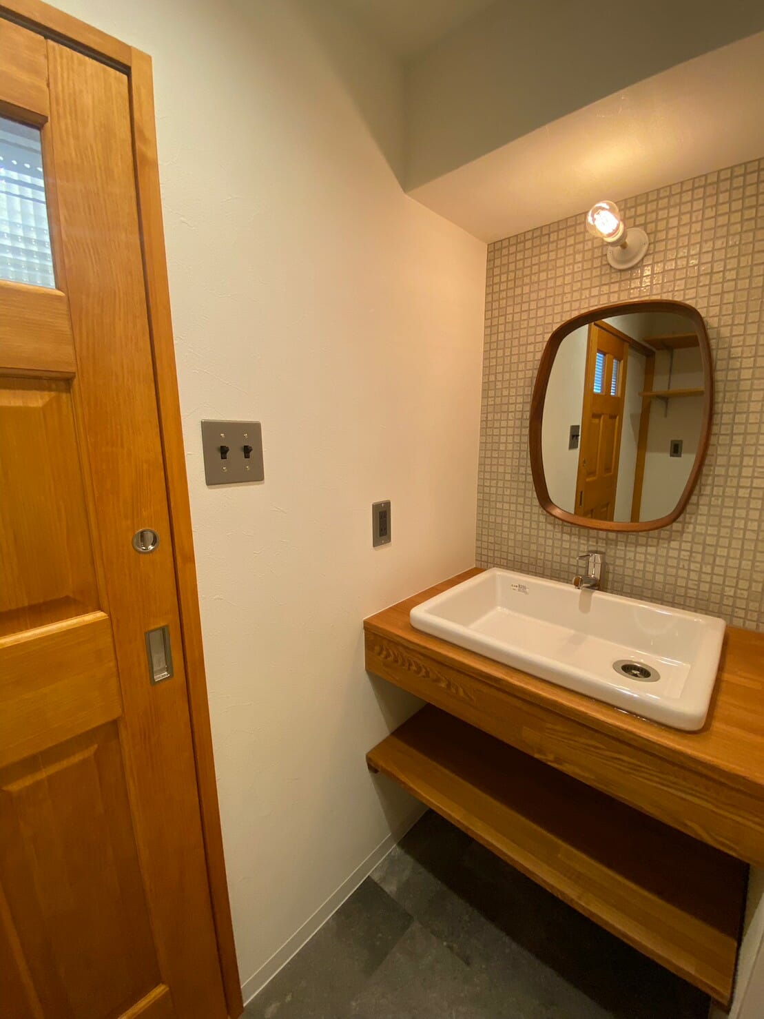 造作家具、造作洗面、手洗い、建具など各ポイントでタイルなどを施工させていただきました。