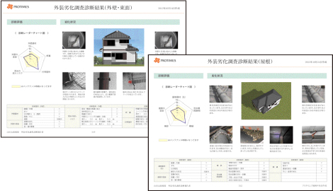 また、外装の現地調査では、飛行条件が許す限りドローンを無料で活用し、お客様が普段見られない屋根の詳細な状態を撮影して確認しています。