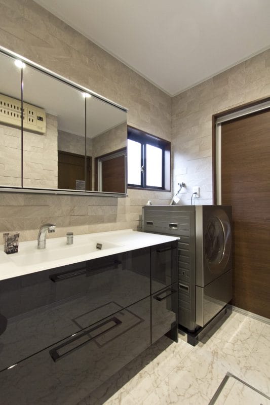 エコカラットの採用や、洗濯パンにもステンレスを取り入れることで、水回りに統一感を持たせました。