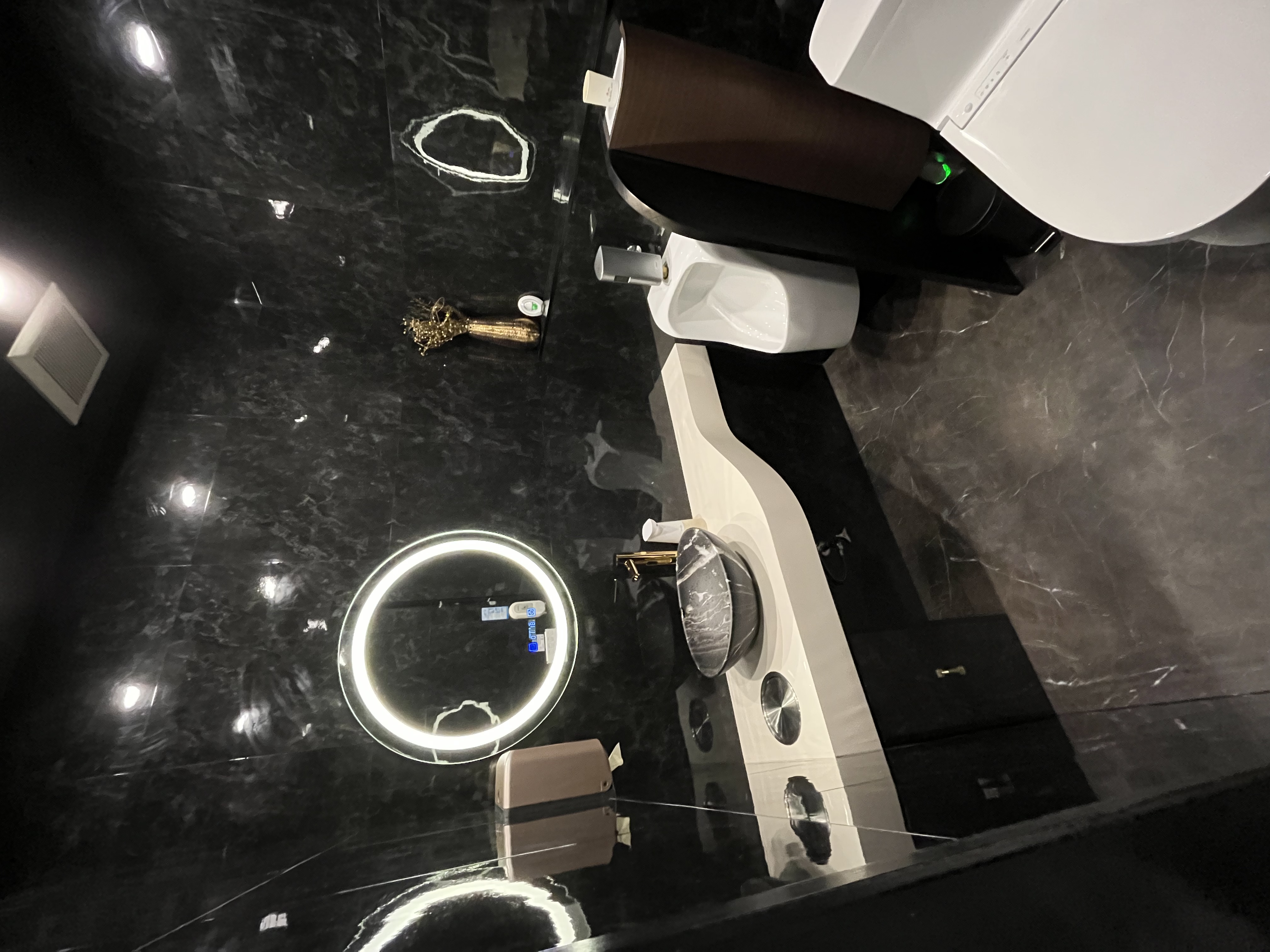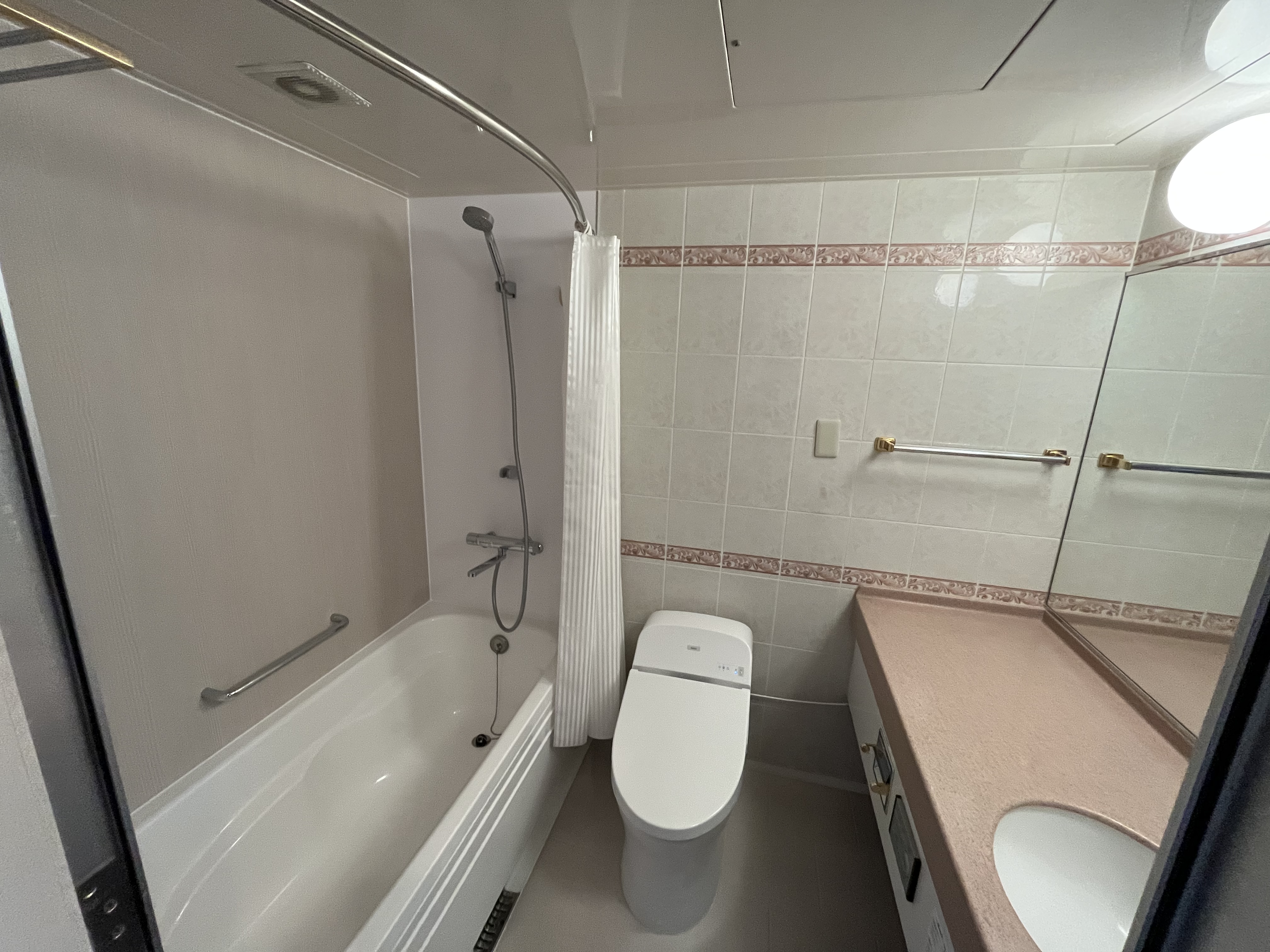 照明付きミラー取り付け、手洗いボウル取付、手洗い自動水栓取り付け、ダストシュート取り付け、ペーパータオルホルダー取り付け