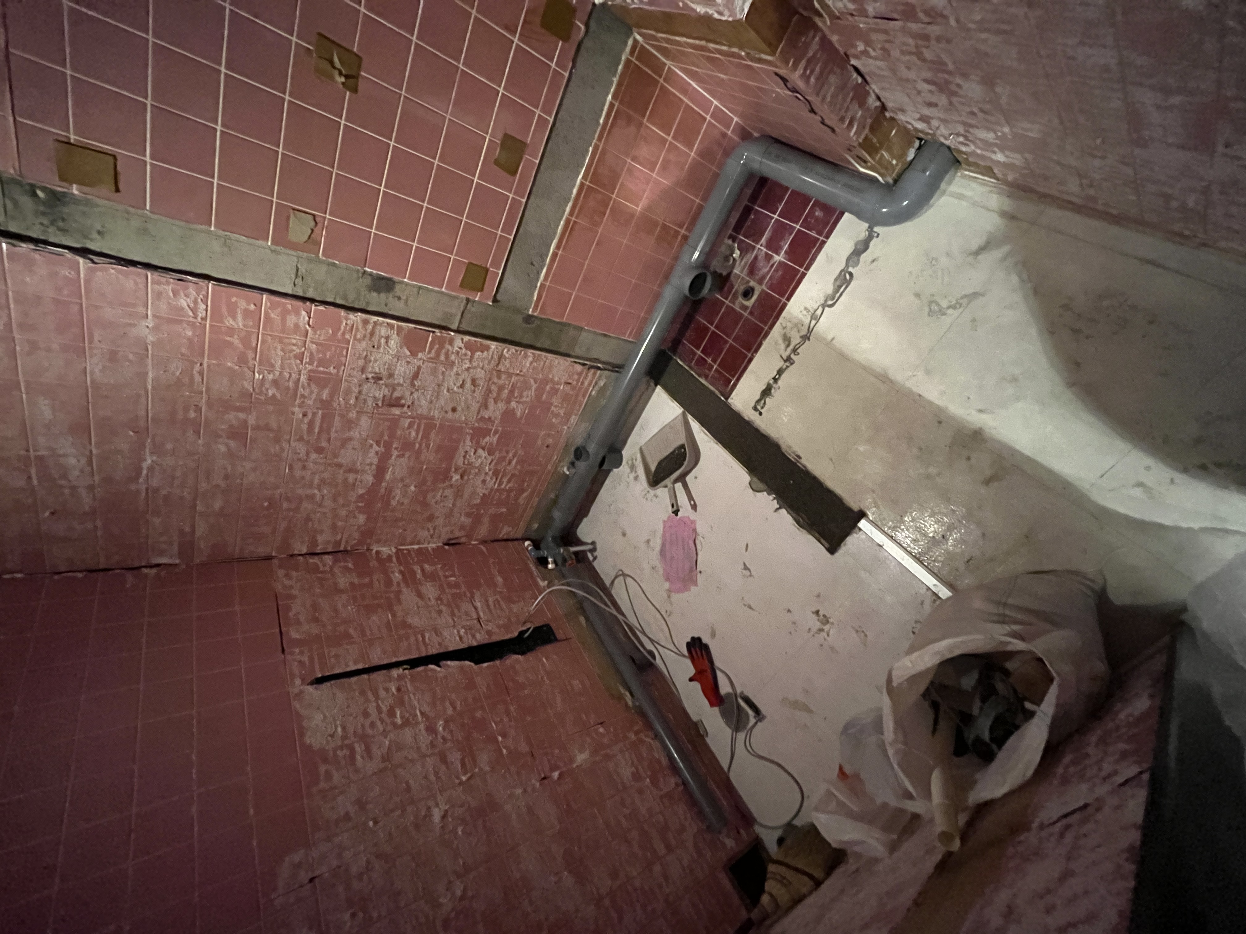 トイレ.洗面解体工事、間仕切り撤去、土間レベル調整、給排水引き直し工事、大工工事、電気工事、内装工事(クロス、フロアタイル)