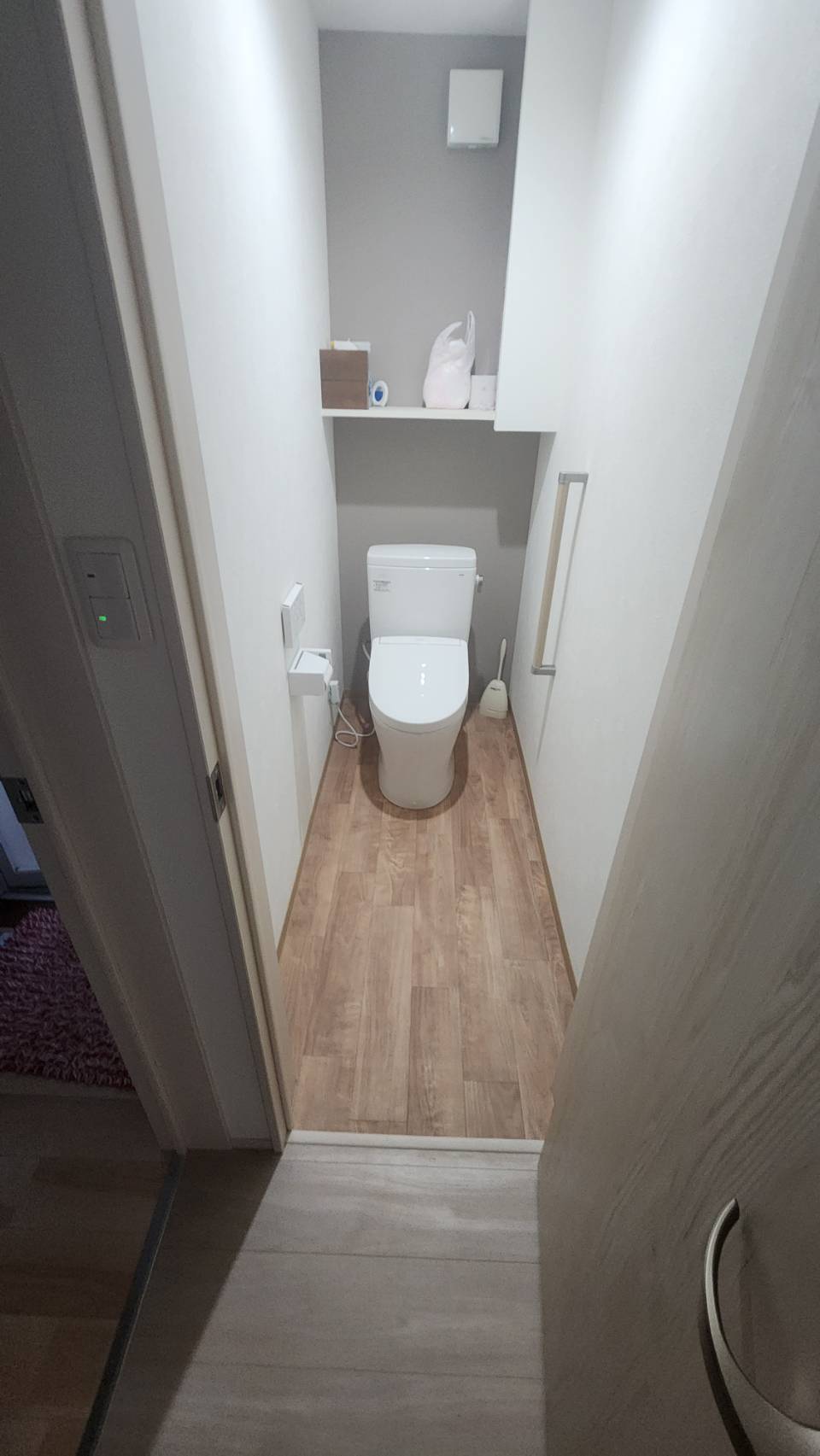 トイレが狭かったので、後ろの収納をつぶして、トイレを広げました。
