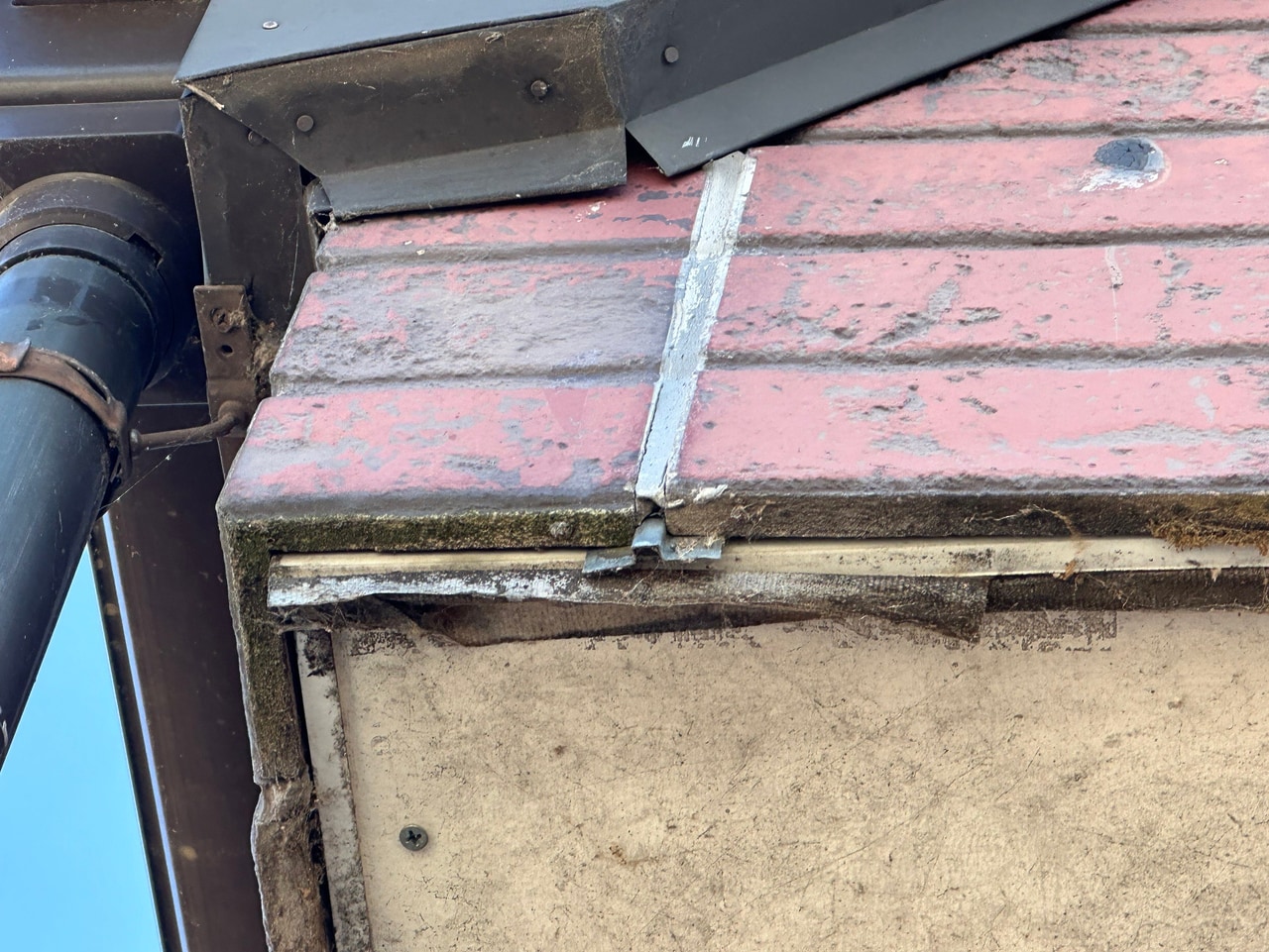 軒天の剥がれ、雨樋を止めている金物が錆びているので施工しました。