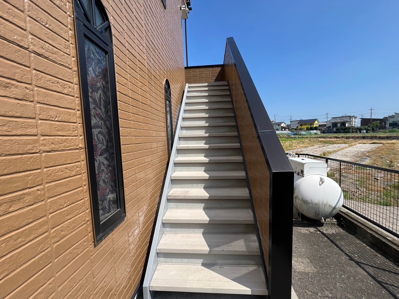 階段に苔が確認できたので、高圧洗浄をしました。