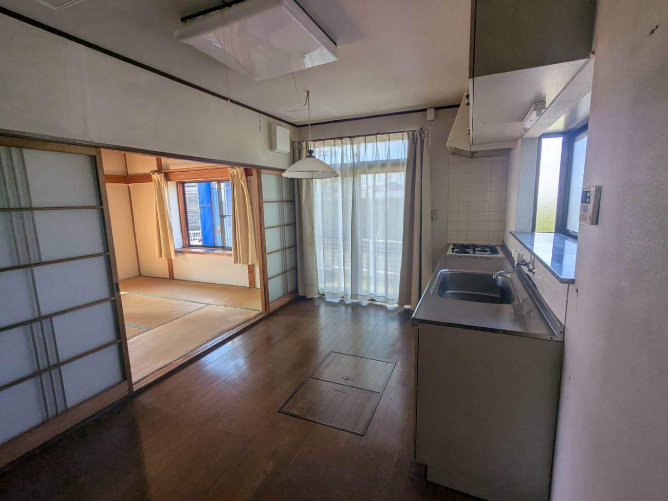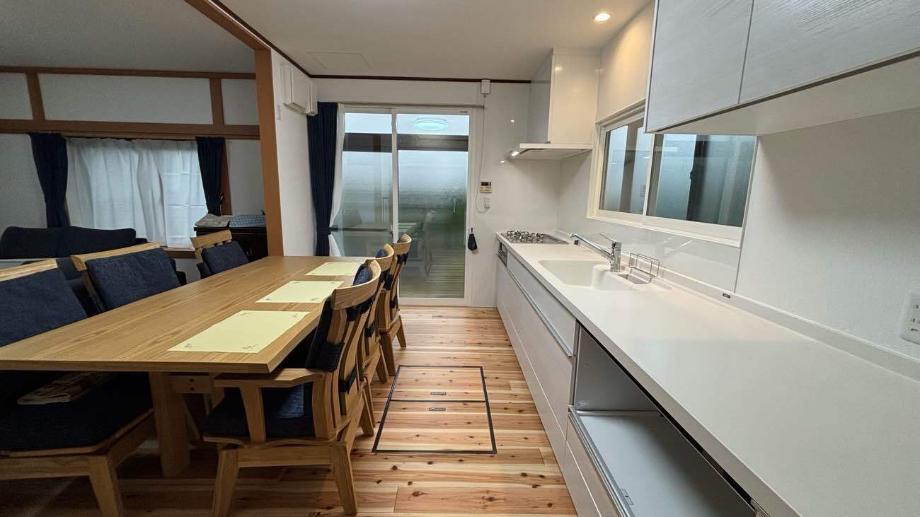 狭く暗く感じる台所と居間を、一つの空間にすることで広々と明るい空間になります。床には無垢材を使用し、陽だまりのような暖かさが広がるLDKで、この先何年もお料理と会話を楽しむことができます。