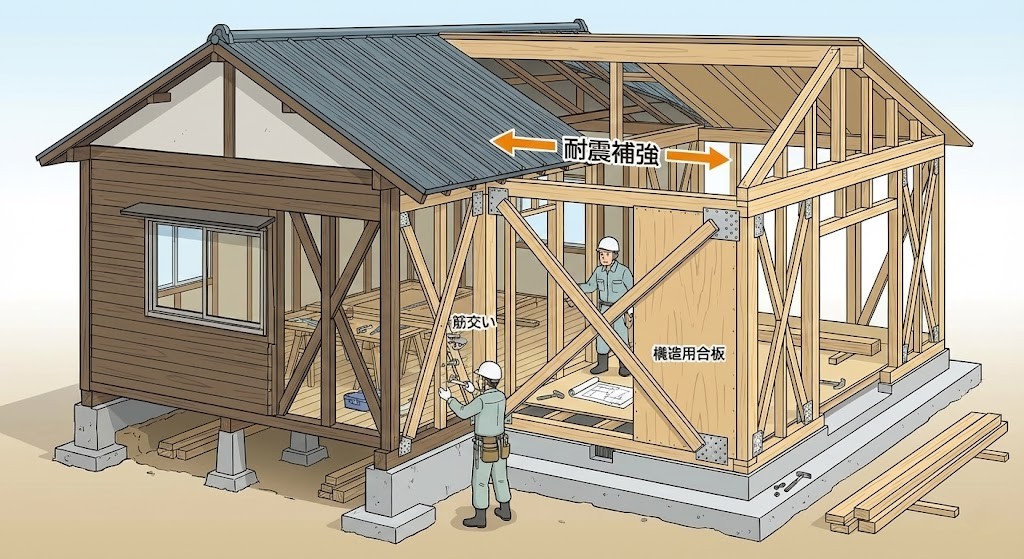 新しく増築した部分と、既存の住宅部分の耐震性を統一する必要があります。建物の耐震性がバラバラだと、地震が発生した場合に倒壊リスクがあるため、統一するのが鉄則のためです。